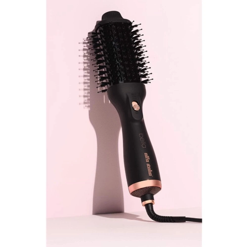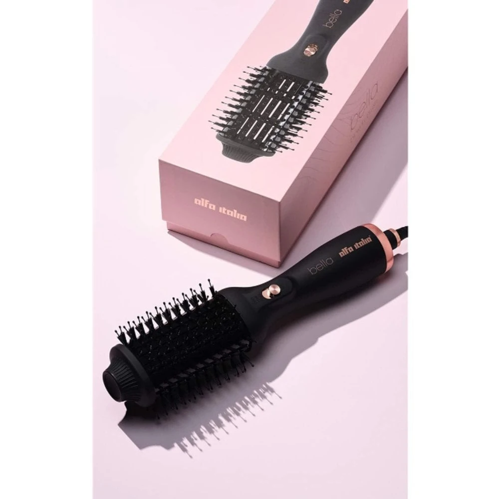 The Alfa Italia bella blow dry brush combines a round brush and hair dryer for a voluminous blowout with twice the shine. Shine bright like a diamond with the bella blow dry brush. This innovative hair styling tool will give your blowout double the shine while giving unwanted frizz the brush off for an effortlessly glossy finish. The large oval barrel creates volume at the root and sleekness along the hair shaft while the mix of long and shorter bristles detangle, smooth and minimise breakage. Adjustable heat settings provide a customised blowout that works for every hair type.