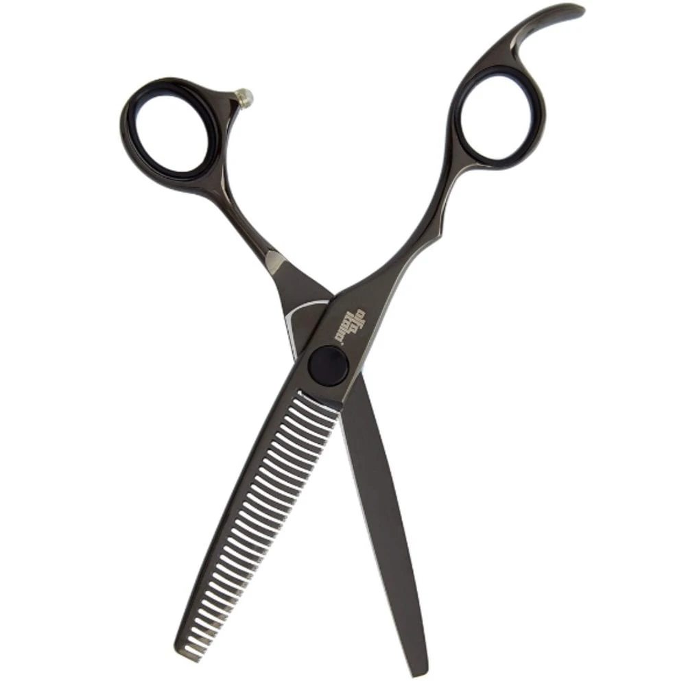 The Alfa Italia Sessione Mancino Left-Handed Soft Cut are the definitive thinning and blending hairdressers scissors designed to cut very short, to blend shorter to longer and to evaporate/thin the bulk and thickness of hair with no blade marks. This professional hairdresser’s scissor is the best thinning and blending tool in any hairdresser’s toolkit.Mancino Soft Cut thinning & blending hairdressers scissors replace traditional thinning scissors, where the thinning teeth are traditionally found on the upper blade. We have redesigned this thinning scissor with the teeth on the lower blade to allow the hair to flow naturally over the teeth to ensure a flawless, clean finish. These 6 inch length hairdressers scissors are made from premium grade Japanese 440 Steel with a hand finished convex blade to deliver a silky smooth feel. Deep black, hi-gloss superior finish. Designed to remove hair effortlessly with NO cut marks. Ideal for cutting scissor over comb. Perfect to reduce weight and blend sections together. Excellent for cropping & short cutting techniques. Designed with left-handed hairdressers and barbers in mind.