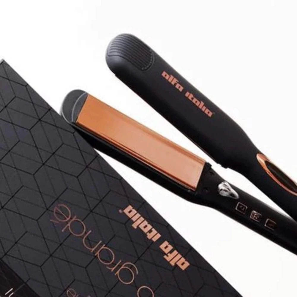 The new Alfa Italia Lustro Grande wide plate styler features infra-red beam technology nestled into the sleek titanium plates, carrying heat deeper into the hair, so moisture is maintained throughout.