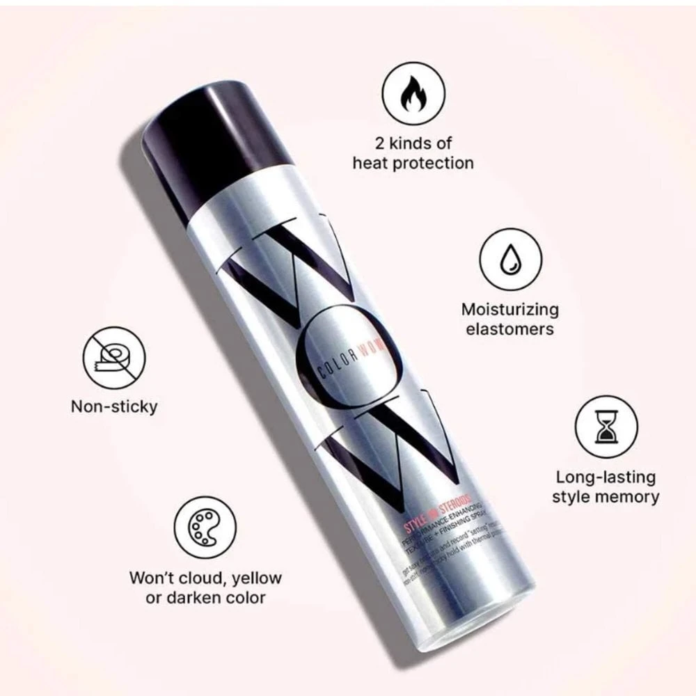 COLOR WOW Style on Steroids see-through formula won’t leave a chalky film or cloud color vibrancy. Perfectly balanced blend of micro-zeolites (for grit and grab) moisturising elastimers (to give hair spring, add style memory and keep strands from fusing together) was created for color-treated hair. COLOR WOW Style on Steroids is perfectly balanced blend of micro-zeolites moisturising elastimers to give hair spring and add style memory.