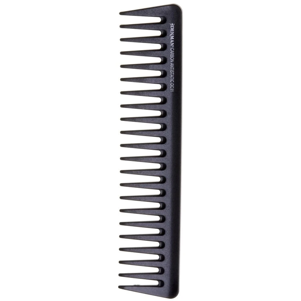 A classic tool for out-of-control hair, this anti-static Detangling Rake Comb from Denman has been designed for the safe and pain-free removal of tangles and knots. A wide-tooth comb for all hair types, it can be used on wet or dry hair. In black.
