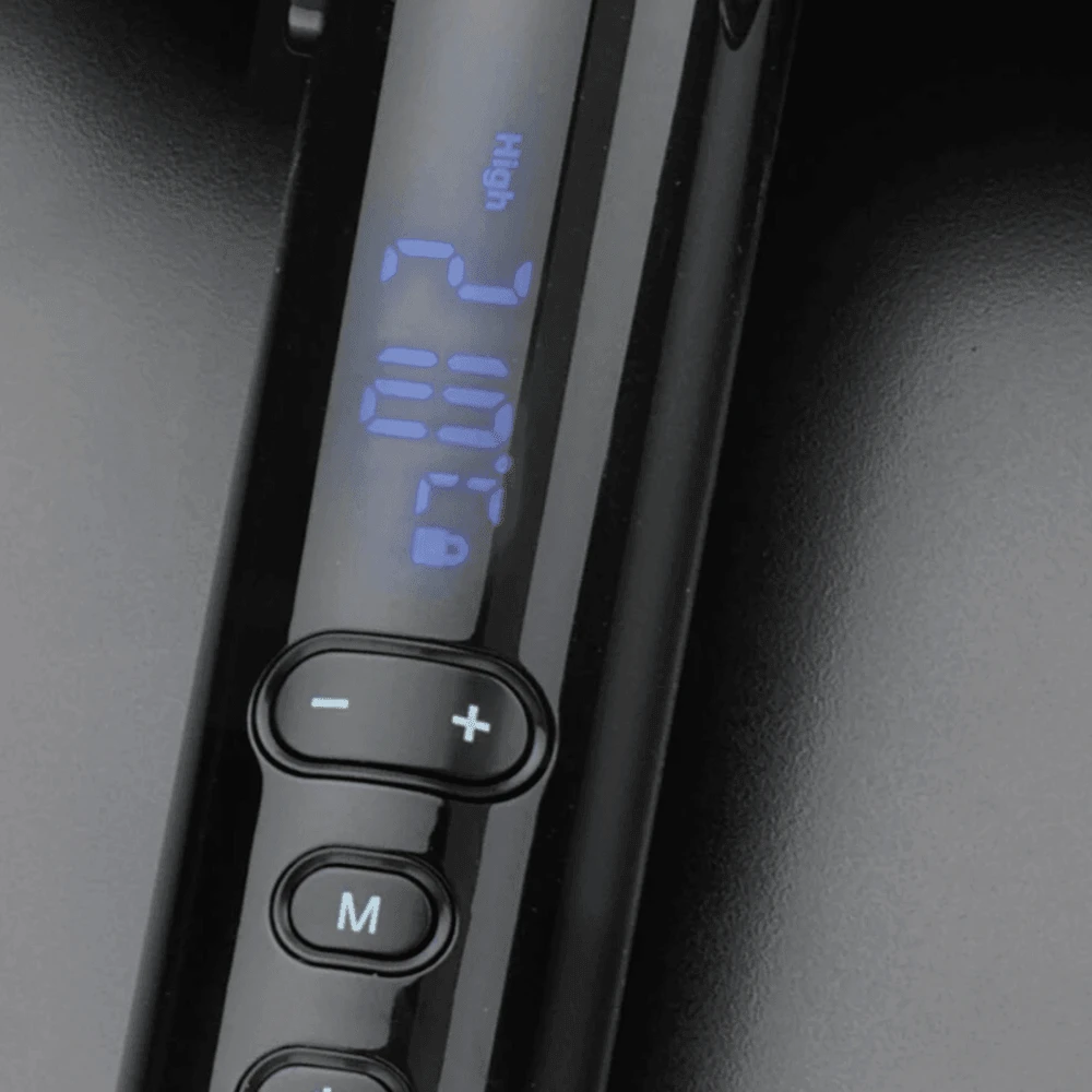 Before use, make sure hair is clean, dry and tangle-free. To turn the styler on press the power button and select the desired temperature by using the ‘+’ and ‘- ‘ buttons. Once the tong is up to heat (this will beep once temperature has been met), you can begin taking medium sized sections (depending on hair length & thickness) and winding them around the barrel. Once Hair is wrapped securely around the barrel, you can apply the Cold Air Fix (button underneath barrel) in order to active the cooling process which will begin to cool the hair down and assist your curls to last longer. When you are happy with the length of time your hair has been on the barrel for, release the hair and the Cold Air Fix button, revealing a brilliant curl. To turn the styler off after use, press the power button (on/off) and wait until it has fully cooled down before storing away.