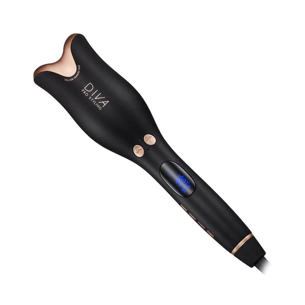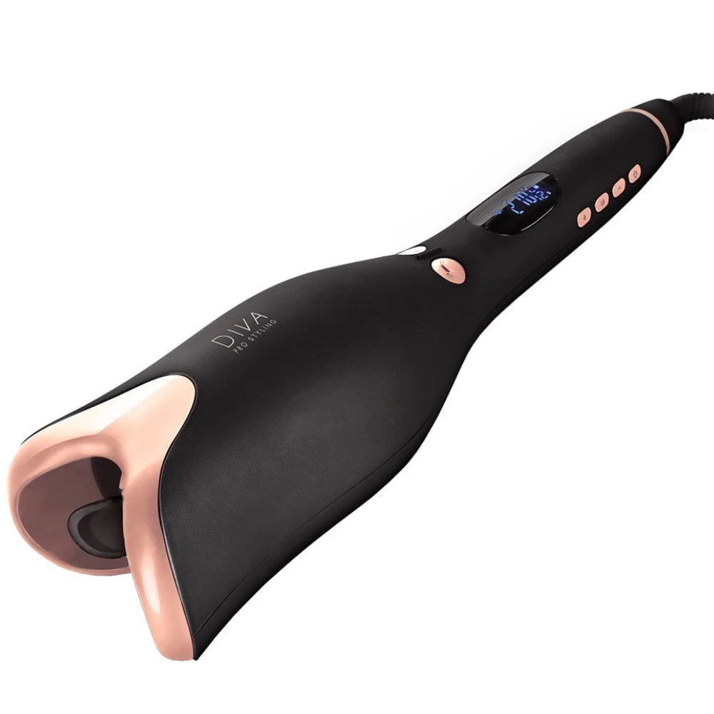 Diva Professional Styling Create big bouncy curls or luxurious swept waves with the push of a button. Macadamia, Argan Oil & Keratin infused barrel reduces frizz and creates deep shine and luminescence. Variable heat settings 80 C – 210 C for all hair types and textures. Directional buttons to easily choose the direction of your curls.