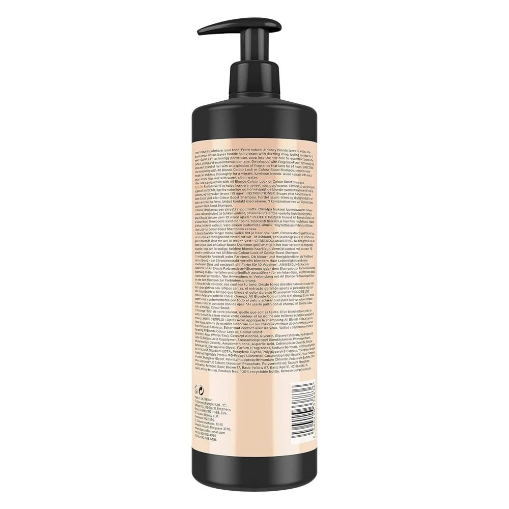 Extend colour life, whatever your tone. From natural and honey blonde tones to white, ashy blondes, lemon extract leaves blonde hair vibrant with dazzling shine, locking in colour for 10 weeks. Opti-PLEX technology penetrates deep into the hair core to reconstruct bonds after chemical, styling and environmental damage. Developed with FragranceFuse technology that infuses each strand of hair with an explosion of fragrance that lasts for 24 hours. For best results use in conjunction with All Blonde Colour Lock or Colour Boost Shampoo.