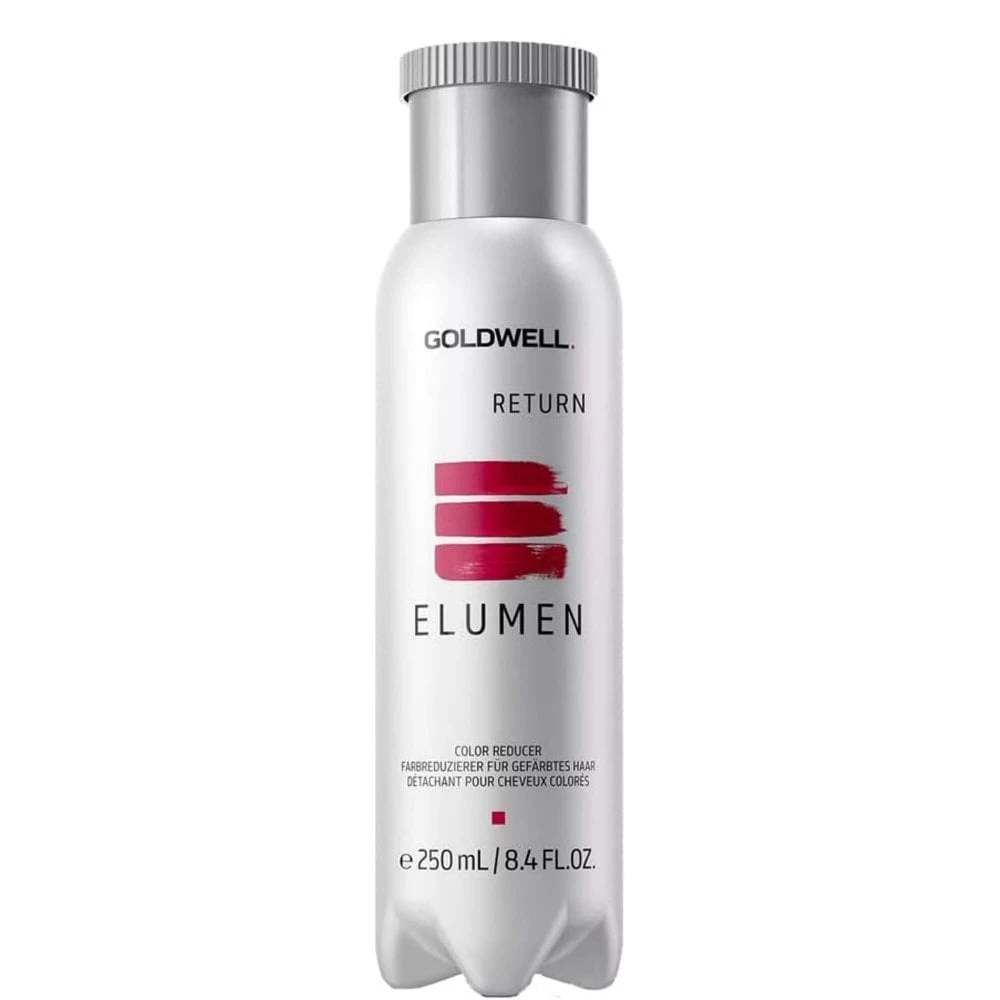 Elumen Return is a special colour reducer specifically designed for use with Elumen Hair Colour. It is able to reduce the colour physically, rather than chemically, and is designed to be use after colouring reduce unwanted depth, vibrancy or tone.Â