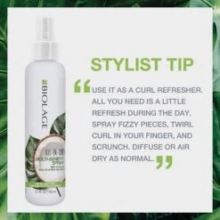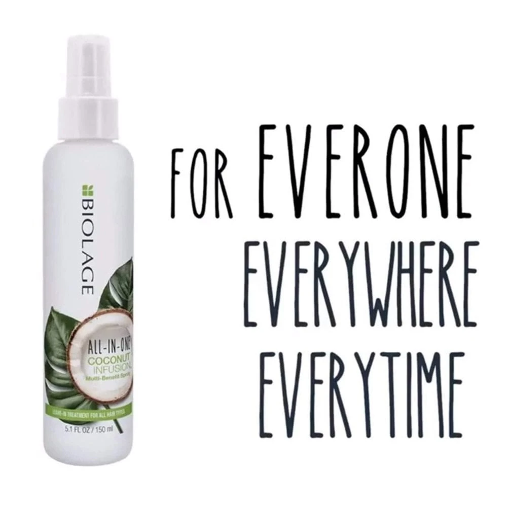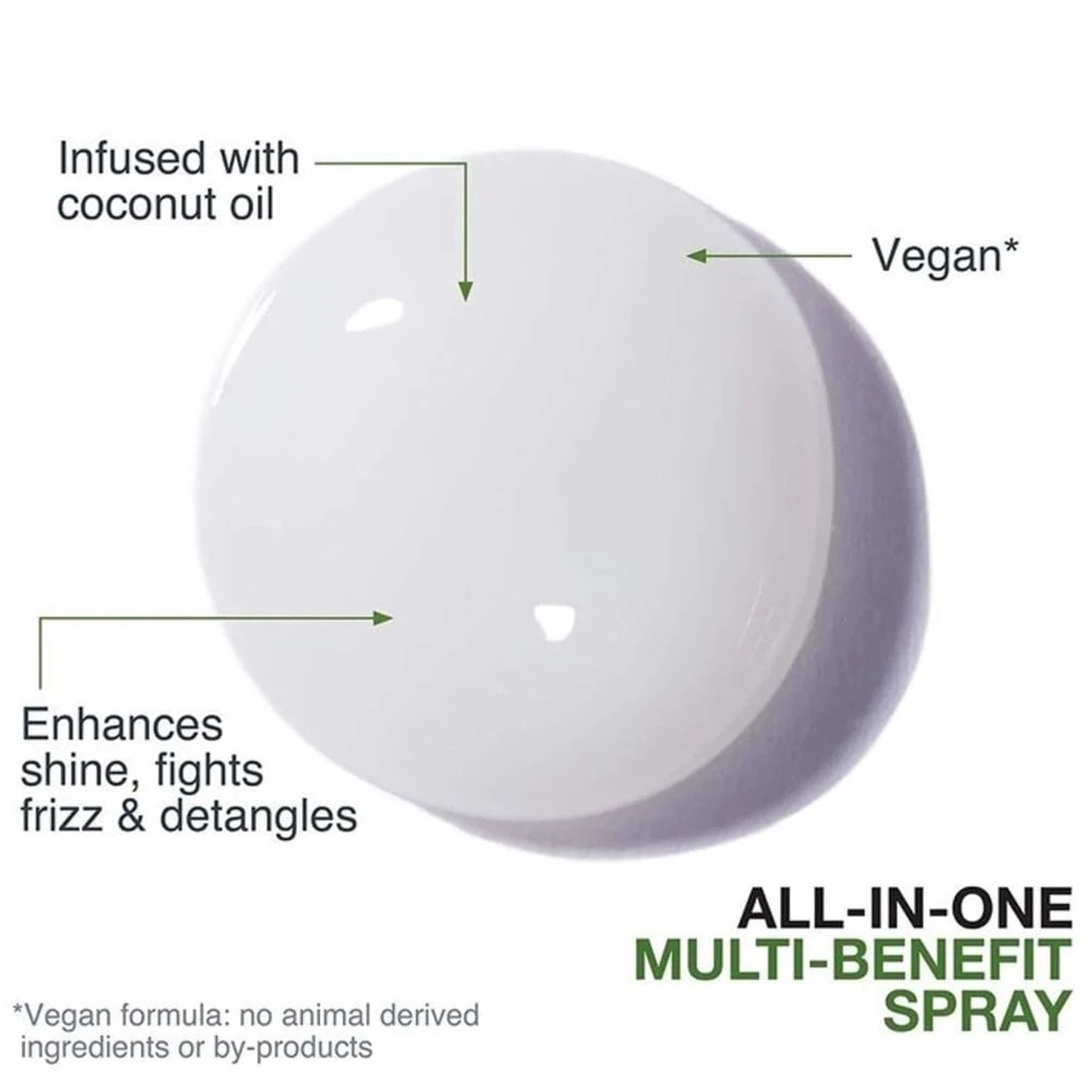 Promote shinier, smoother-looking hair with the Biolage All-In-One Coconut Infusion Multi-Benefit Leave-In Spray. Suitable for all hair types, the multi-tasking spray helps to visibly detangle strands for improved manageability.The spray diffuses a light coating of hydration over the hair that forms a protective barrier to help defend against external aggressors, while providing heat protection to help minimise styling damage. Enriched with coconut oil, the formula helps to moisturise dryness, leaving hair feeling more manageable and perfectly primed for styling hair.