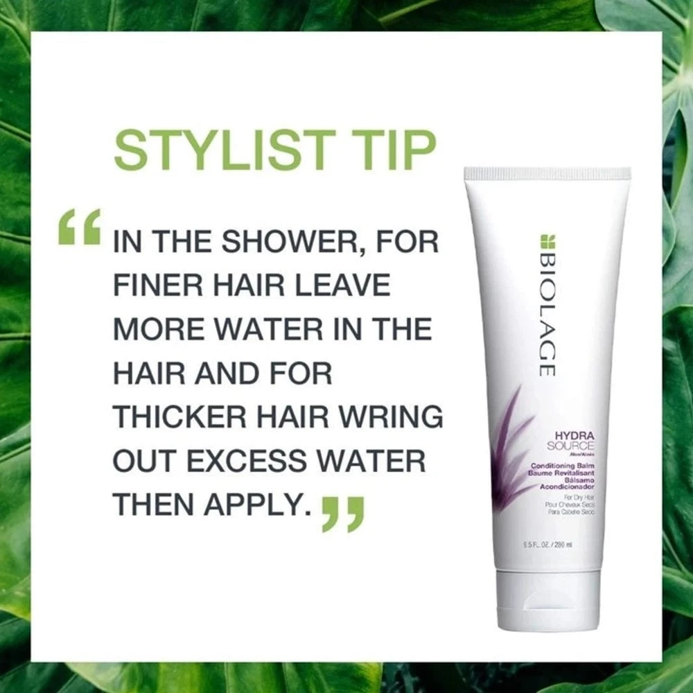 Apply the shampoo on wet hair and leave in for 1-2 minutes, then rinse thoroughly. Follow with Hydrasource Conditioner. Biolage Hydrasource products are recommended for fine to medium hair. Apply the Hydrasource conditioner for extra hydration and locking moisture in your hair.
