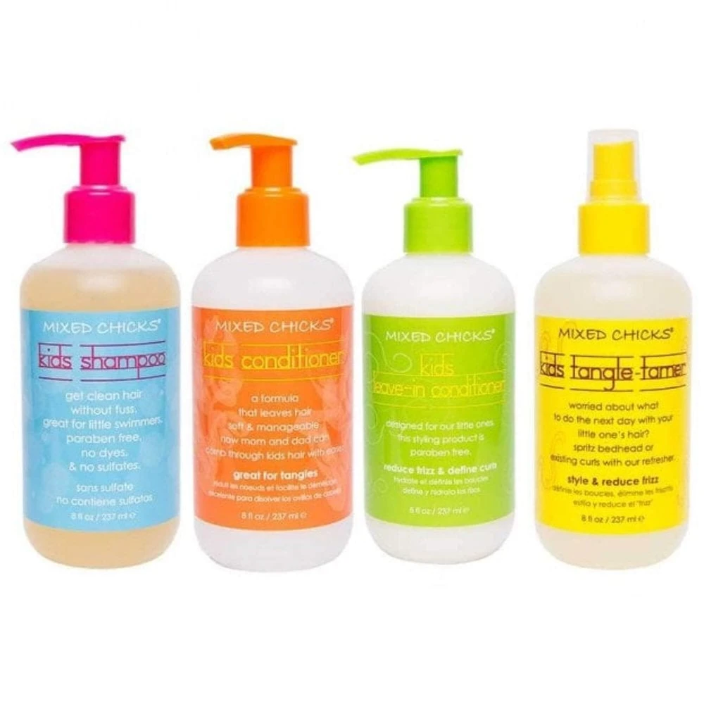 An easy-to-use kids hair solution for curly or straight hair. Try to work through tangles when hair is wet, and don’t shampoo too often.