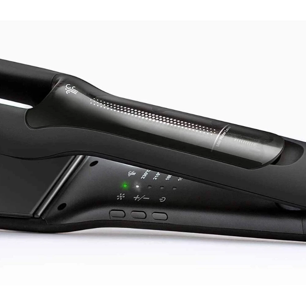 This innovative new styling tool with it’s integrated cool water vapour function delivers a cool mist onto the hair as it works. The cold water vapour means hair is straightened or curled with less damage, whilst adding moisture and up to 78% more shine and eliminating up to 35% frizz compared to untreated hair.