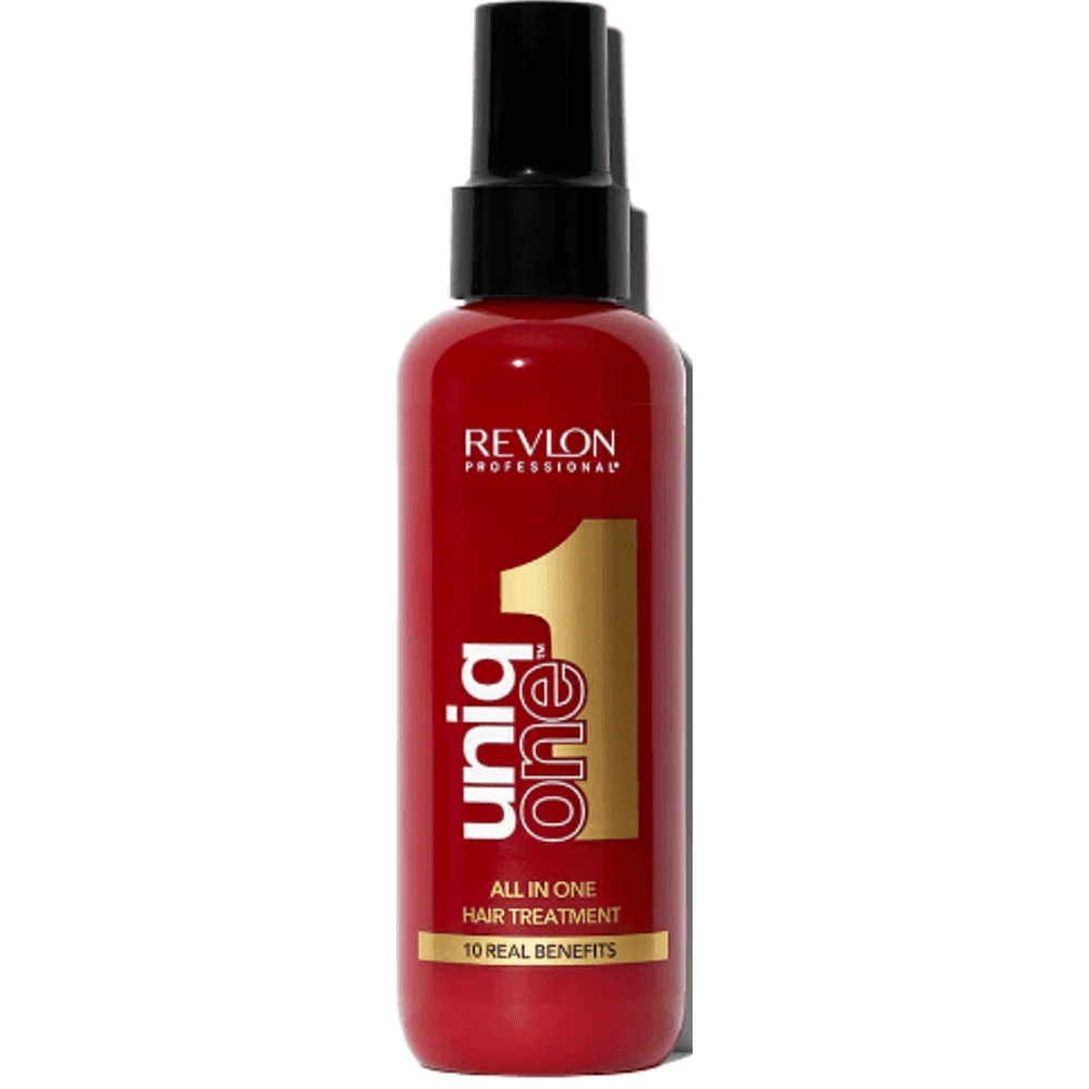 The Uniq One All In One Hair Treatment 150ml is the first all in one leave in spray mask providing: Repair for dry damaged hair, shine and frizz control, heat protection, hair colour protection/with UVA & UVB filters, incredible detangling, adds body, prevents split ends, makes brushing and straightening easier and gives a long lasting hairstyle with silkiness and smoothness.