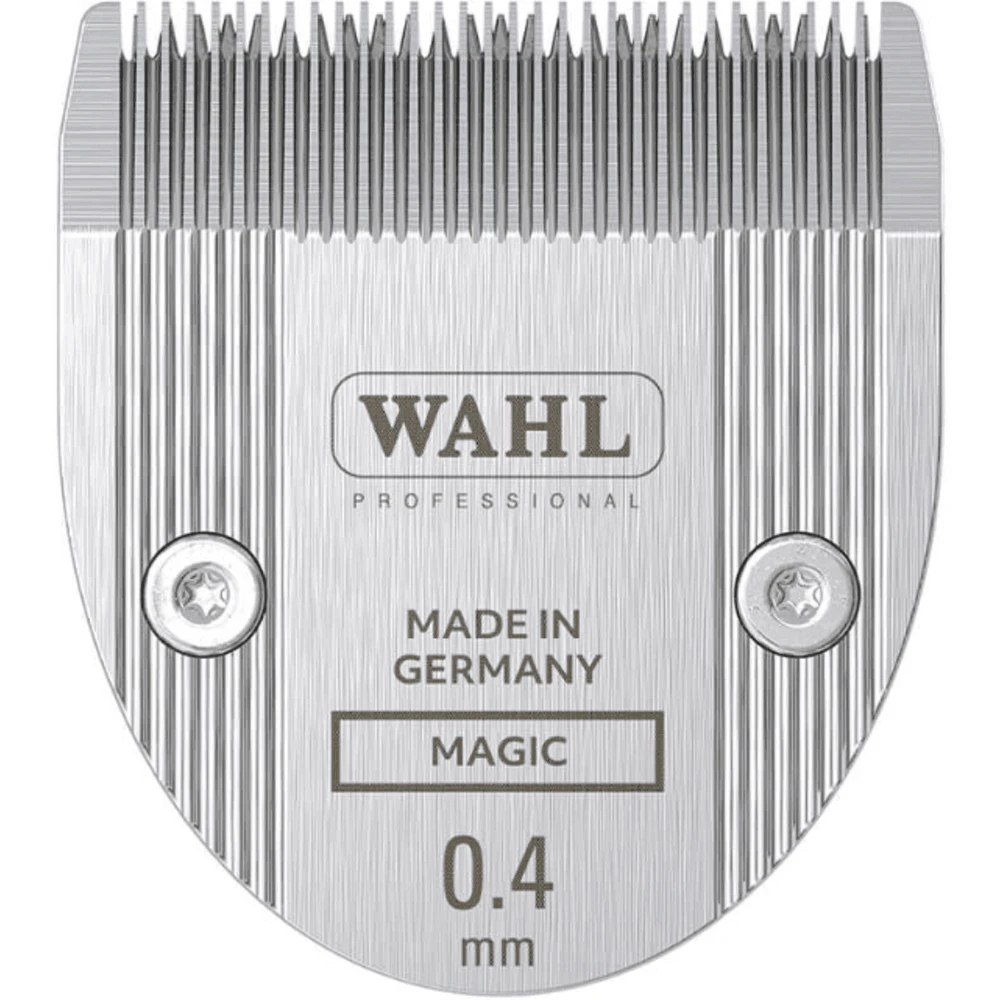 Wahl blades are made using the highest standard machinery. Every blade is precision ground to ensure sharpness and durability, improving the quality of your cutting experience. Snaps on and off for easy cleaning. Cutting length: 0.4mm. Blade width: 32mm.