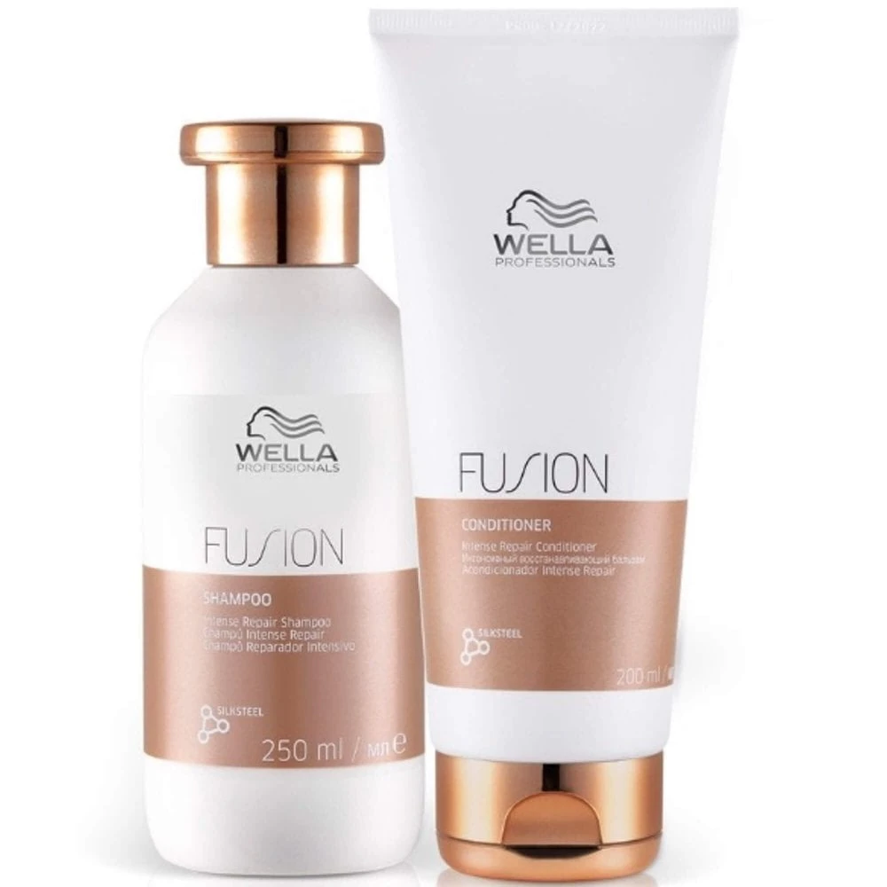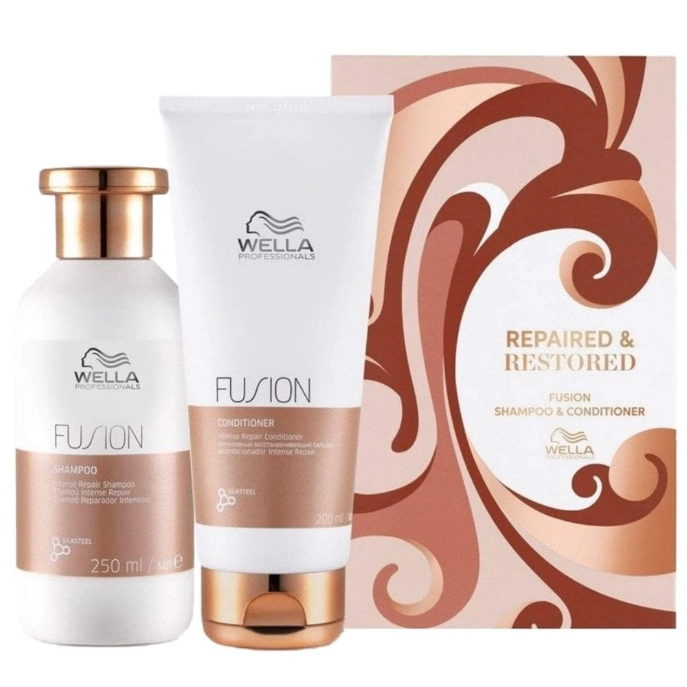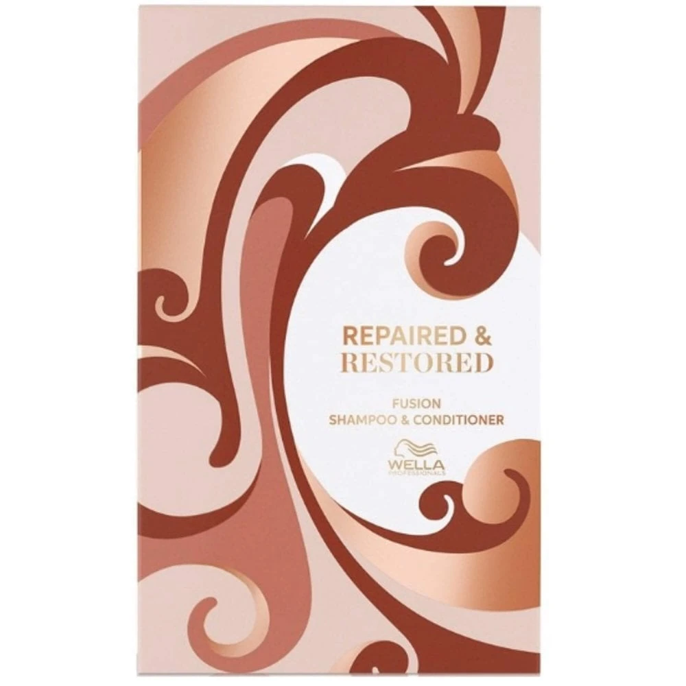 Wella Professionals Fusion Repaired & Restored Hair Gift Set delivers up to 95% less breakage, so even the most damaged hair feels renewed and silky smooth. The Fusion Intense Repair Shampoo is a delicate shampoo and helps to repair damaged hair, leaving the hair cleansed and cared for. The Fusion Intense Repair Conditioner is nourishing and instantly helps to protect hair against breakage by detangling the hair, leaving it smooth and renewed.