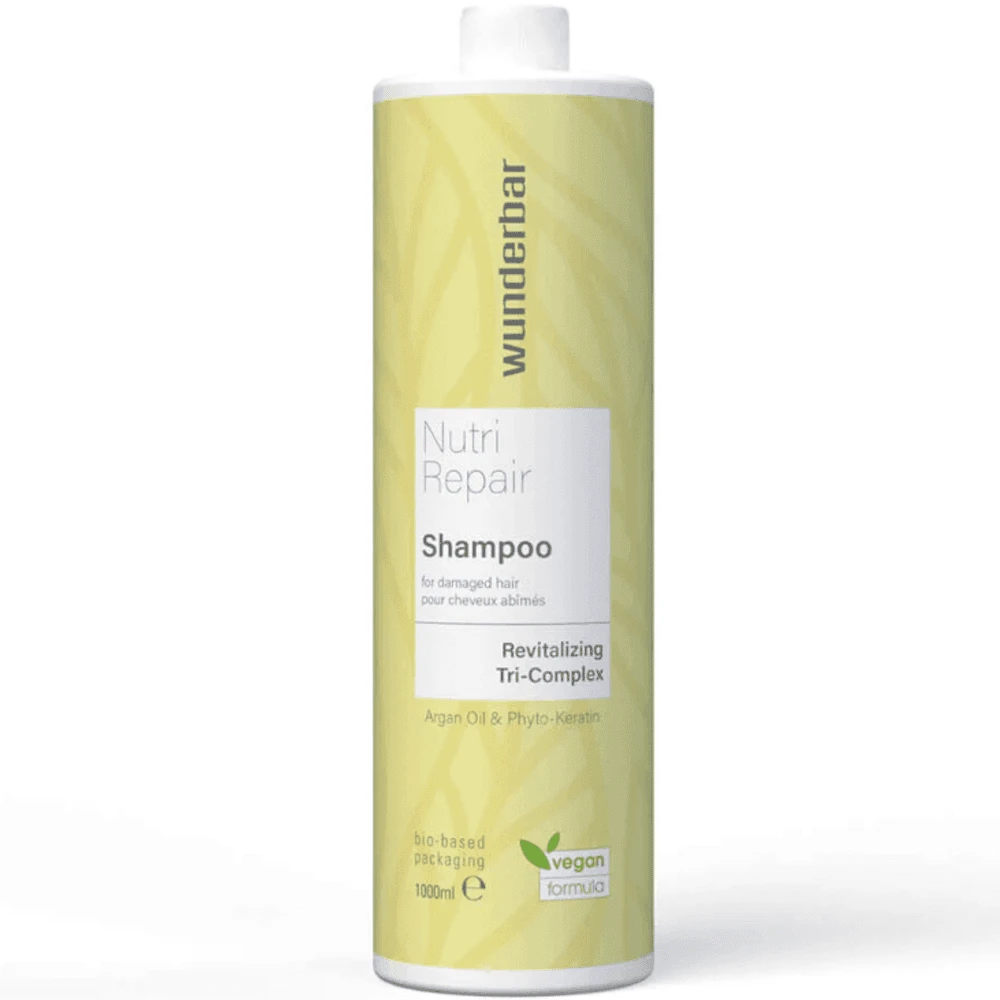The Wunderbar Vegan Nutri Repair Shampoo naturally repairs and replenishes the most damaged hair. This 100% vegan shampoo contains a special blend of Wunderbar’s unique Revitalizing Tri-Complex, argan oil and phyto-keratin to strengthen, moisturise and protect hair against damage caused by heat styling and chemical treatments. With every wash, this shampoo leaves hair feeling smooth and soft to touch. The bottles are made from sustainable packaging, meaning you’re contributing to an eco-friendly planet.Use with the Wunderbar Vegan Nutri Repair and Strengthening Conditioner for maximum results.